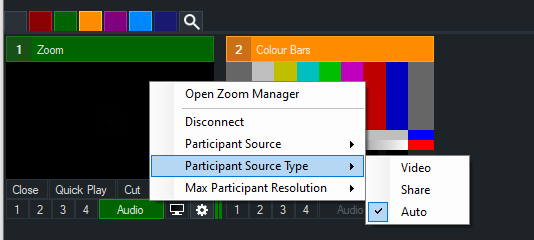By default, each Zoom input will display the participants camera and then switch to the participants screen sharing automatically when enabled.