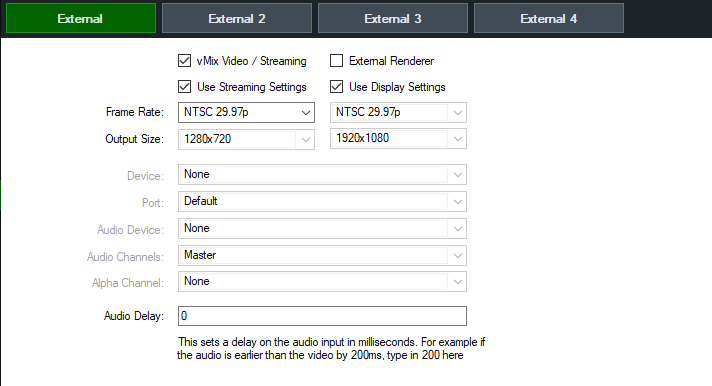 In vMix 4K and Pro and Max an additional three independent outputs can be configured for both vMix Video and External Renderer.