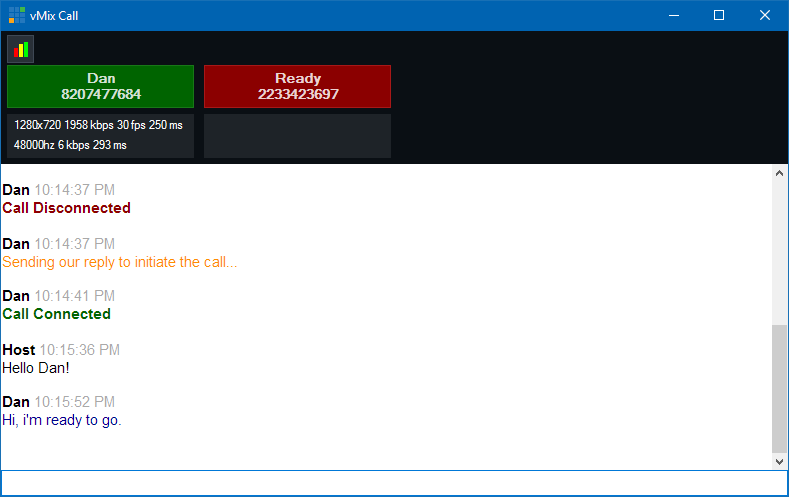vMix Call includes a call manager window that provides the ability to monitor all calls and text chat with guests.