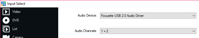 2. Select the Audio Device and optionally the Channel(s) and click OK.