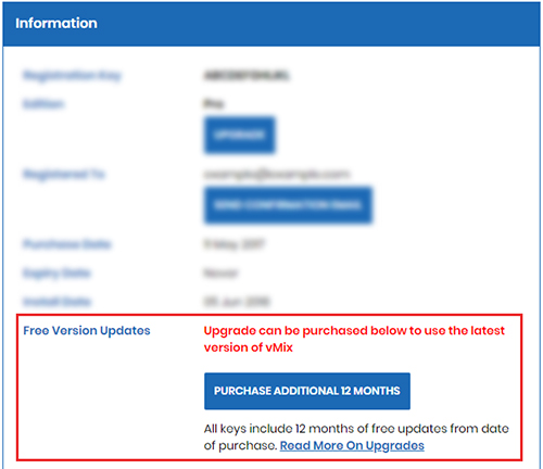 With each purchase of a vMix license, comes 12 months (1 year) worth of free version updates. After the 12 months has ended, if you do wish to update to the latest version of vMix, you will need to purchase a version update upgrade fee. However, we do recommend firstly checking if you are eligible for a free version update before purchasing an upgrade.