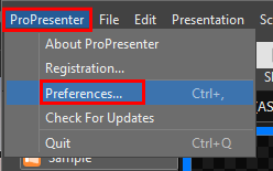 Go to the ProPresenter menu up the top left and select Preferences.
