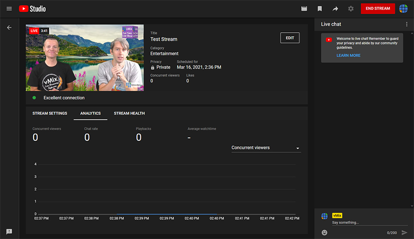 NOTE: Once you finish the stream in vMix, it will also automatically end in YouTube. No need to stop the stream in the YouTube Studio interface.