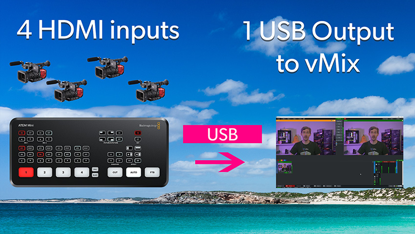 If you have a low-powered PC or do not own a multi-camera capture card, then the ATEM Mini offers a way to handle up to 4 cameras outside of vMix. The ATEM Mini range are switching devices that can only output 1 feed at a time. So when connecting to vMix you will not be able to add each camera individually or see a preview of each camera. If you are instead looking for a way to switch multiple cameras individually within vMix, then using a multi-input capture card is recommended. For that, please see our Supported Video Capture Hardware page: